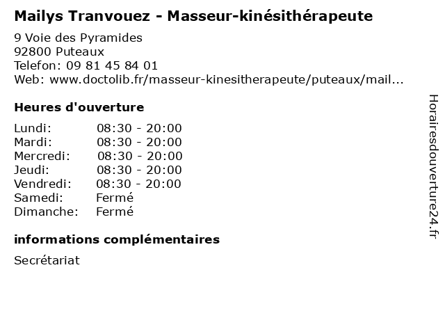 | Lundi | 08:30-20:00 |