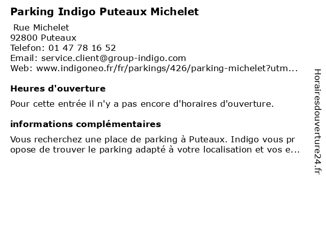 | Appeler Parking Indigo Puteaux Michelet | |