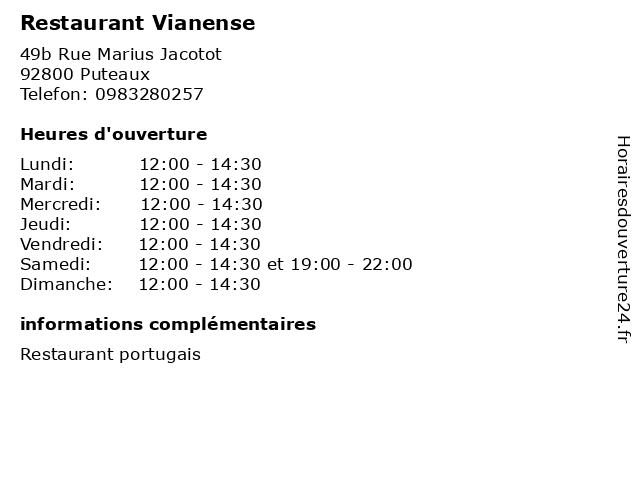 | Samedi | 12:00-14:30 et 19:00-22:00 |
