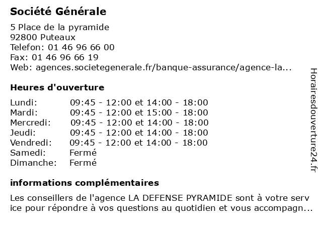 1 Société Générale (Distance: 0,24 km) 15 Parvis de la defense, 92800 Puteaux association d'épargne et de crédit, atm, conseil en crédit, générale, organisme d'assurance auto, organisme d'assurance moto, organisme d'assurance-habitation, organisme d'assurance-vie, société 2 Société Générale (Distance: 0,26 km) 17b Place des Reflets, 92400 Courbevoie agence, banque, crédit, générale, service, société, société générale, épargne 3 Société Générale (Distance: 0,30 km) 81 Avenue du Général de Gaulle, 92800 Puteaux agence, agent, banque, crédit, générale, service, société, épargne 4 Société Générale (Distance: 0,36 km) 42 Pas de la Coupole, 92400 Courbevoie agence, devis d'assurance automobile, générale, prêt à domicile, prêt à la consommation, société 5 Société Générale (Distance: 0,45 km) 32 Cours Michelet, 92800 Puteaux agence, devis d'assurance automobile, générale, prêt à domicile, prêt à la consommation, société 6 Société Générale (Distance: 0,94 km) 83 Rue de bezons, 92400 Courbevoie association d'épargne et de crédit, atm, conseil en crédit, générale, organisme d'assurance auto, organisme d'assurance moto, organisme d'assurance-habitation, organisme d'assurance-vie, société |