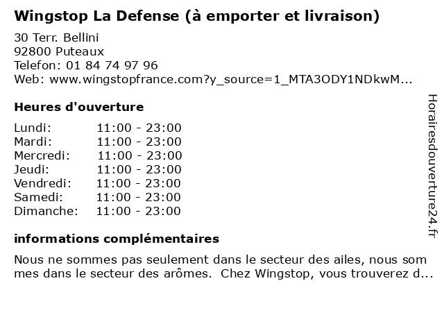 Termes de recherche pour Wingstop La Defense (à emporter et livraison):la, et, defense, restaurants, emporter, livraison, wingstop, restaurant de poulet |