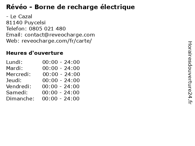 | Samedi | 00:00-24:00 |