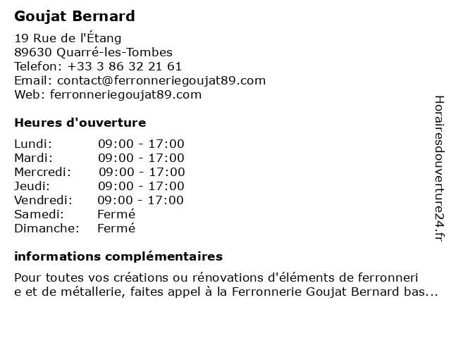 | Samedi | Fermé |