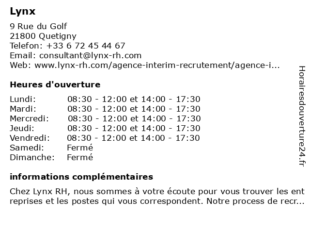 | Lundi | 08:30-12:00 et 14:00-17:30 |