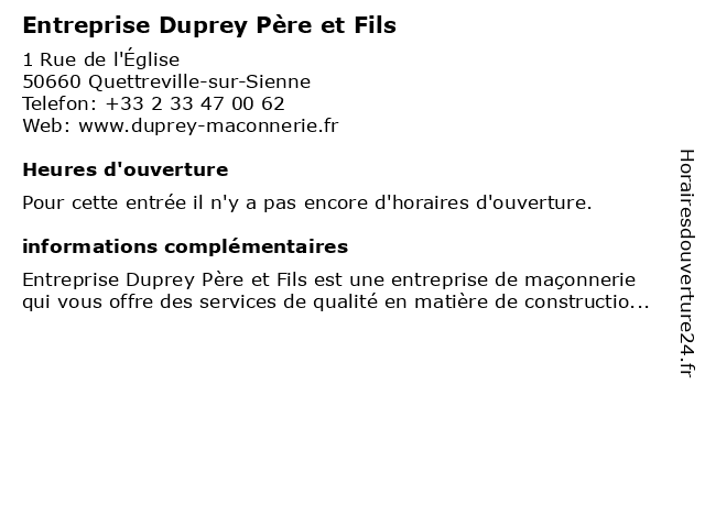 | Appeler Entreprise Duprey Père et Fils | |