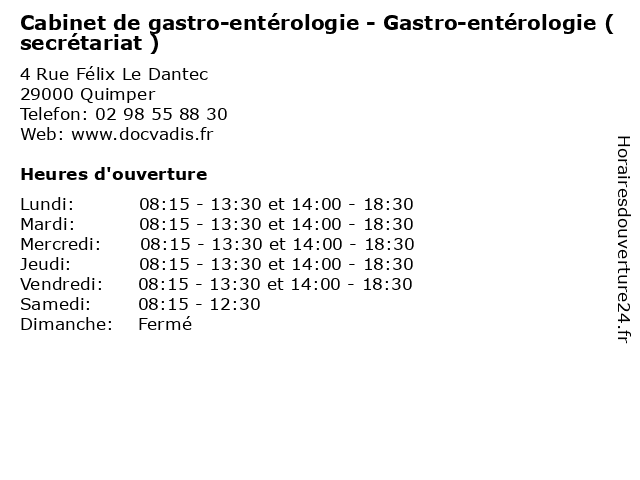 | Mercredi | 08:15-13:30 et 14:00-18:30 |