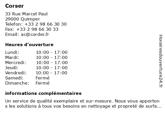 1 CORSER (Distance: 55,14 km) 1 Rue Honoré d'Estienne d'Orves, 56100 Lorient corser, entreprises, nettoyage de vitre, nettoyage professionnel, propreté, remise en état |