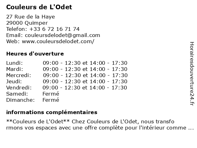| Lundi | 09:00-12:30 et 14:00-17:30 |