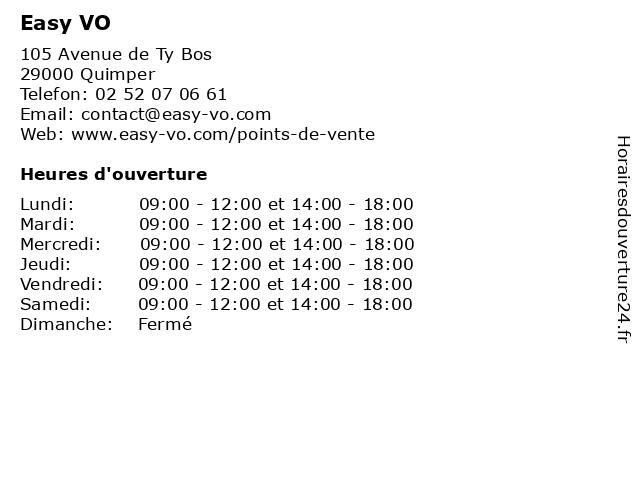 | Mardi | 09:00-12:00 et 14:00-18:00 |