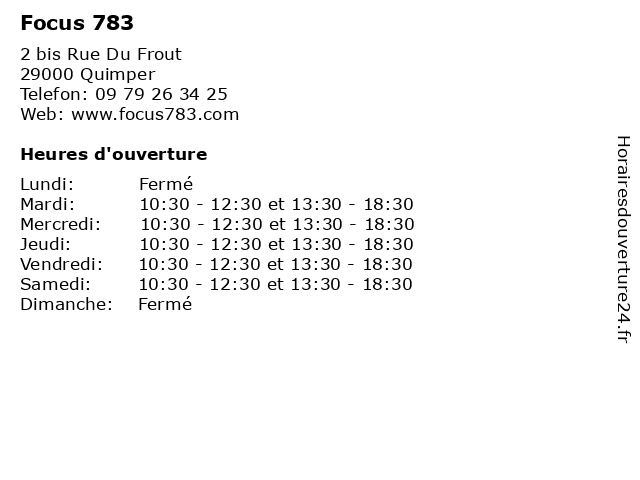 | Mardi | 10:30-12:30 et 13:30-18:30 |