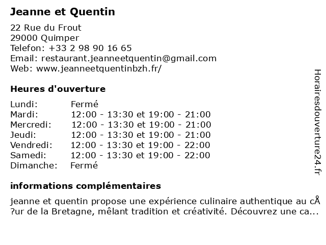 | Mardi | 12:00-13:30 et 19:00-21:00 |