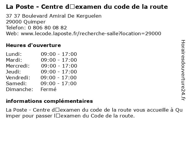 Termes de recherche pour La Poste - Centre d’examen du code de la route:poste, la, du, de, route, centre, code, d’examen, centre d'évaluation scolaire, école technique |