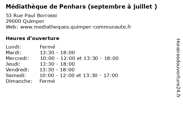 | Mercredi | 10:00-12:00 et 13:30-18:00 |