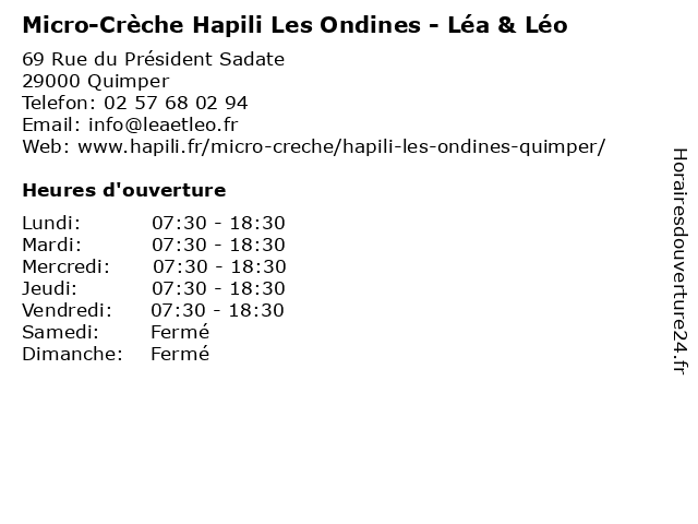 | Lundi | 07:30-18:30 |