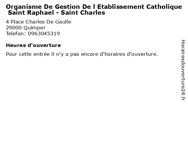 | Appeler Organisme De Gestion De l Etablissement Catholique Saint Raphael - Saint Charles | |