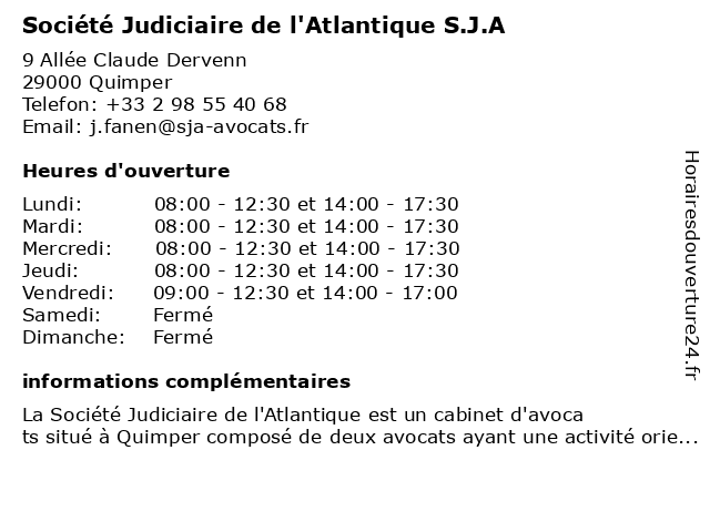 | Lundi | 08:00-12:30 et 14:00-17:30 |