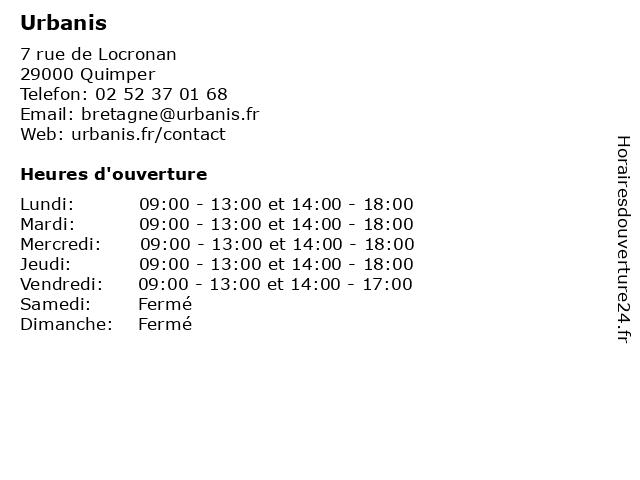 | Lundi | 09:00-13:00 et 14:00-18:00 |