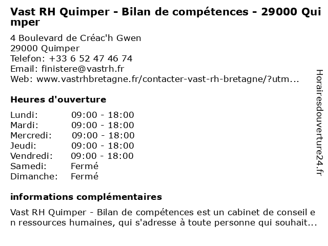 Termes de recherche pour Vast RH Quimper - Bilan de compétences - 29000 Quimper:de, quimper, bilan, vast, rh, compétences, 29000 |