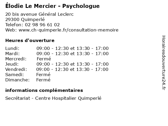 | Mardi | 09:00-12:30 et 13:30-17:00 |