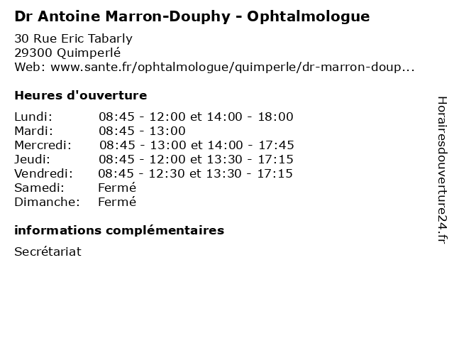 | Lundi | 08:45-12:00 et 14:00-18:00 |