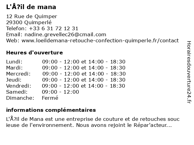 | Lundi | 09:00-12:00 et 14:00-18:30 |