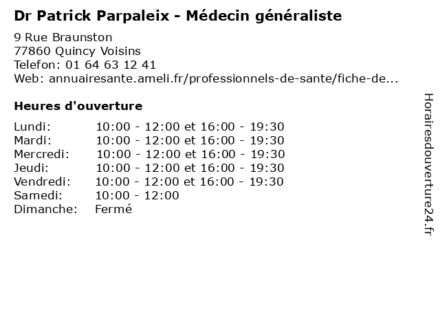 | Lundi | 10:00-12:00 et 16:00-19:30 |