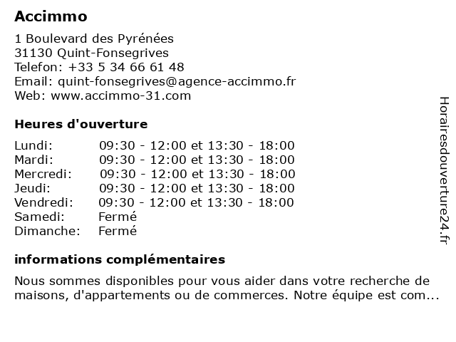 | Lundi | 09:30-12:00 et 13:30-18:00 |
