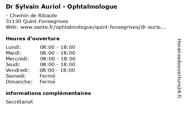 1 Dr Benoit Rouquie - Ophtalmologue (Distance: 0,00 km) - Chemin de Ribaute, 31130 Quint-Fonsegrives benoit, dr, ophtalmologie, ophtalmologistes, ophtalmologue, rouquie, vision 2 Dr Marie Malecaze - Ophtalmologue (Distance: 0,00 km) - Chemin de Ribaute, 31130 Quint-Fonsegrives dr, malecaze, marie, ophtalmologie, ophtalmologistes, ophtalmologue, vision 3 Dr Ghislaine Ducos De Lahitte - Ophtalmologue (Distance: 0,00 km) - Chemin de Ribaute, 31130 Quint-Fonsegrives de, dr, ducos, ghislaine, lahitte, ophtalmologie, ophtalmologistes, ophtalmologue, vision 4 Dr Bertrand Benard - Ophtalmologue (Distance: 0,00 km) - Chemin de Ribaute, 31130 Quint-Fonsegrives benard, bertrand, dr, ophtalmologie, ophtalmologistes, ophtalmologue, vision 5 Dr Philippe Imbert - Ophtalmologue (Distance: 0,18 km) 52 bis Chemin de Ribaute, 31130 Quint-Fonsegrives consultation, docteur, dr, imbert, medecins, ophtalmologie, ophtalmologue, philippe, rendez, santé, sur, vous 6 Dr Sylvain Kirzin - Chirurgien viscéral et digestif - secrétariat (Distance: 0,31 km) 52 Chemin de Ribaute, 31130 Quint-Fonsegrives chirurgien, consultation, digestif, docteur, dr, et, kirzin, med, médecin, médecine, secrétariat, sylvain, traitement, viscéral |
