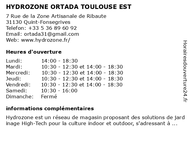 | Mardi | 10:30-12:30 et 14:00-18:30 |