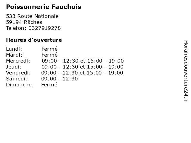| Lundi | Fermé |