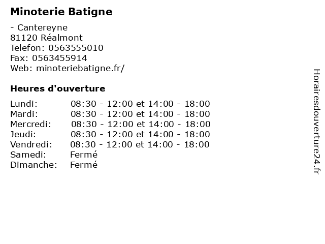 Lundi | 08:30-12:00 et 14:00-18:00 |