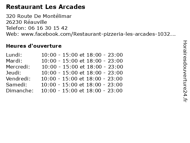 | Mardi | 10:00-15:00 et 18:00-23:00 |