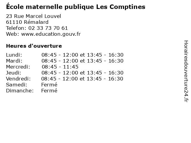 | Lundi | 08:45-12:00 et 13:45-16:30 |