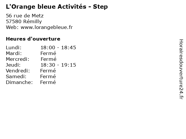 1 L'Orange bleue Activités - Step (Distance: 13,91 km) 14 Rue des Drapiers, 57070 Metz activités, bleue, exercise, fitness, health, l'orange, outdoor, physical activities, sports, step 2 L'Orange bleue Activités - Abdos fessiers (Distance: 0,00 km) 56 rue de Metz, 57580 Rémilly abdos, activités, bleue, exercise, fessiers, fitness, health, l'orange, outdoor, physical activities, sports 3 L'Orange bleue Activités - Yako attitude (Distance: 0,00 km) 56 rue de Metz, 57580 Rémilly activités, attitude, bleue, exercise, fitness, health, l'orange, outdoor, physical activities, sports, yako 4 L'Orange bleue Activités - Yako training (Distance: 0,00 km) 56 rue de Metz, 57580 Rémilly activités, bleue, exercise, fitness, health, l'orange, outdoor, physical activities, sports, training, yako 5 L'Orange bleue Activités - Yako pump (Distance: 0,00 km) 56 rue de Metz, 57580 Rémilly activités, bleue, exercise, fitness, health, l'orange, outdoor, physical activities, pump, sports, yako 6 L'Orange bleue Activités - Yako integral (Distance: 0,00 km) 56 rue de Metz, 57580 Rémilly activités, bleue, exercise, fitness, health, integral, l'orange, outdoor, physical activities, sports, yako |