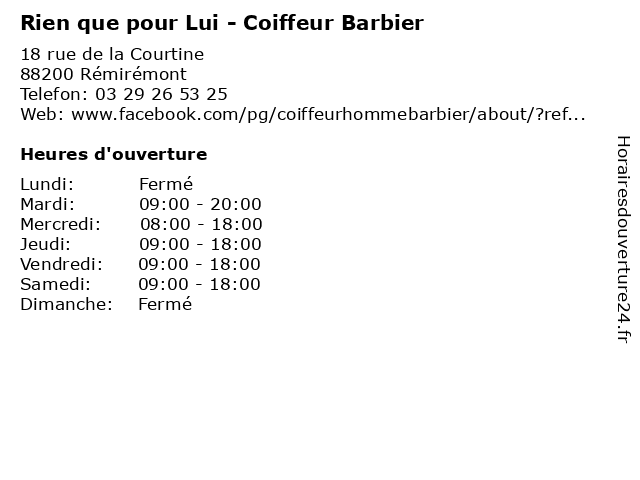 | Lundi | Fermé |