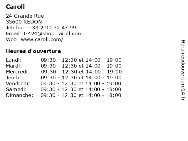 | Samedi | 09:30-12:30 et 14:00-19:00 |