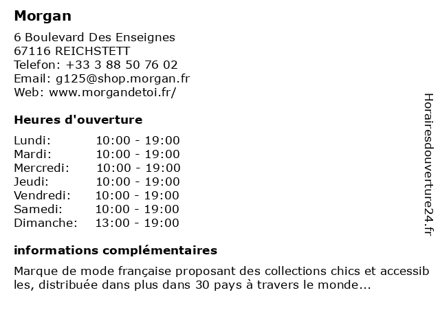 2 Morgan (Distance: 8,02 km) 34 Rue du 22 Novembre, 67000 Strasbourg blazer femme, cardignan femme, chaussures femme, gilet femme, jean femme, magasin femme, magasin vêtements, manteau femme, mode femme, morgan, pull femme, robe femme, sac femme, t-shirt femme, tailleur femme, top femme, vêtements femmes 3 Morgan (Distance: 8,06 km) 24 Rue Des Grandes Arcades, 67000 STRASBOURG blazer femme, cardignan femme, chaussures femme, gilet femme, jean femme, magasin femme, magasin vêtements, manteau femme, mode femme, morgan, pull femme, robe femme, sac femme, t-shirt femme, tailleur femme, top femme, vêtements femmes 4 Maître Morgan Rapinat - Avocat (Distance: 7,35 km) 20 Place des Halles, 67000 Strasbourg avocat, avocats, cabinet, conseils, contentieux, juridique, justice, litiges, maître, morgan, rapinat, services 5 Groupe Morgan Services (Distance: 7,55 km) 29 rue du Faubourg de Saverne, 67000 Strasbourg agence, emplois, groupe, intérim, morgan, offres, services 6 Heinrich-Gasan Morgan (Distance: 18,85 km) 18 Rue du Maréchal Joffre, 67500 Haguenau gasan, heinrich, morgan |