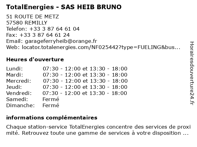 Termes de recherche pour TotalEnergies - SAS HEIB BRUNO:sas, total, bruno, heib, gas station, station service, tankstelle, totalenergies |