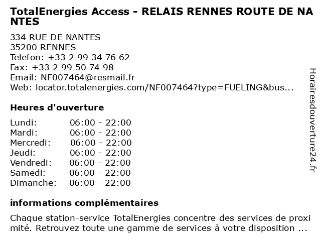 Termes de recherche pour TotalEnergies Access - RELAIS RENNES ROUTE DE NANTES:relais, de, nantes, rennes, access, route, total, gas station, station service, tankstelle, totalenergies |