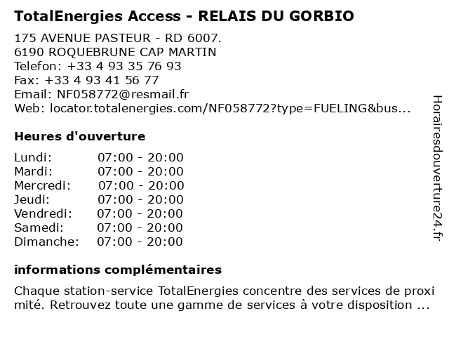 Termes de recherche pour TotalEnergies Access - RELAIS DU GORBIO:relais, du, access, total, gorbio, gas station, station service, tankstelle, totalenergies |