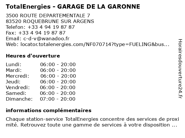 | Dimanche | 07:00-20:00 |