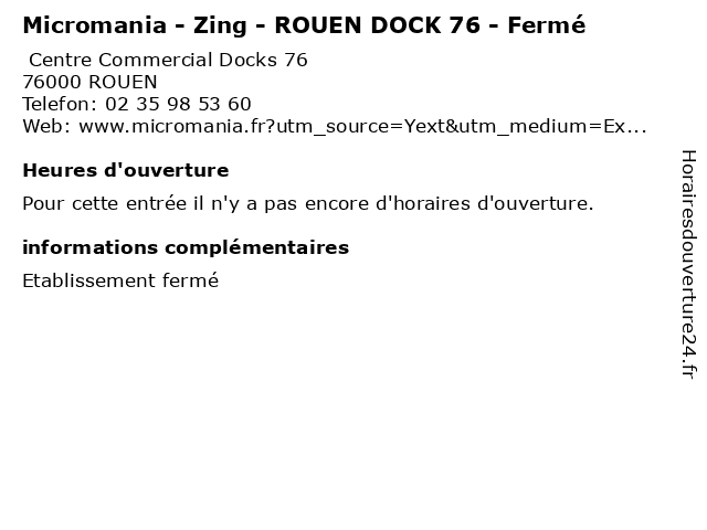 | Appeler Micromania - Zing - ROUEN DOCK 76 - Fermé | |