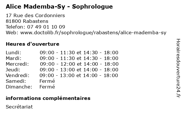 | Mardi | 09:00-11:30 et 14:30-18:00 |