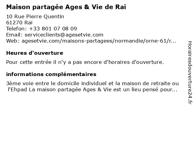 | Appeler Maison partagée Ages & Vie de Rai | |