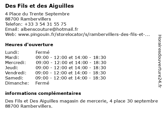 | Mardi | 09:00-12:00 et 14:00-18:30 |