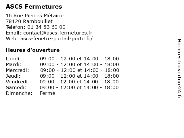 | Samedi | 09:00-12:00 et 14:00-18:00 |