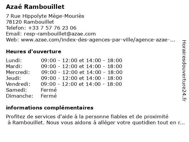 Lundi | 09:00-12:00 et 14:00-18:00 |