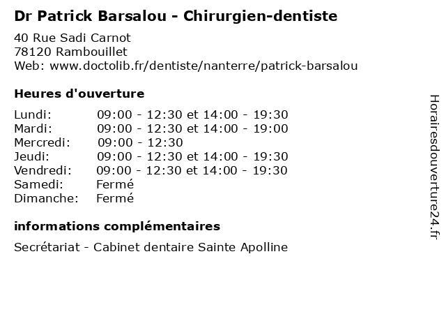 | Lundi | 09:00-12:30 et 14:00-19:30 |