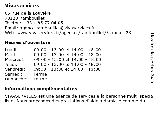 3 Vivaservices (Distance: 28,59 km)59 Rue du Maréchal Foch, 78000 Versailles vivaservices