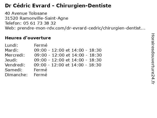 | Mardi | 09:00-12:00 et 14:00-18:30 |